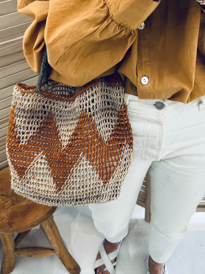 Among Equals bags are made from natural fibres sourced from surrounding vegetation including the Sisal and Pandanus plant, laboriously beaten, twisted into string and then woven. Weavers expertly utilise natural dyes made from plants, ochres and berries to enhance their patterns