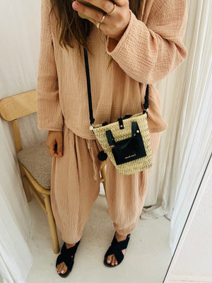 The Nano Panier. The perfect size! we fit our phone, make up, cards, keys and still have some room! The perfect summers day bag. The perfect night bag. The all occassion, every event bag. The size that will actually work and be light weight. We love this leather/straw combo.