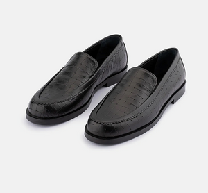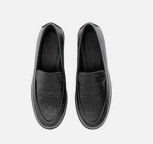 The Emmie Loafer is a contemporary take on the classic European style shoe. The round-two profile and subtle detailing are an ode to the past, while the embossed weave leather offers a timeless finish. Style the Emmie loafer with a mini or under your jeans and blazer or perfect to toughen up the right maxi.