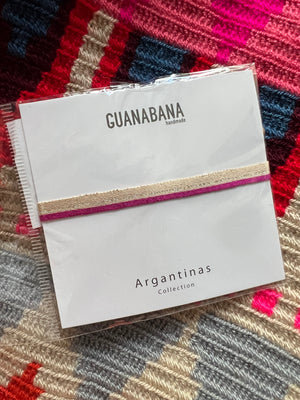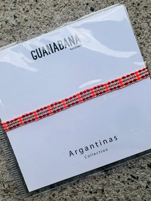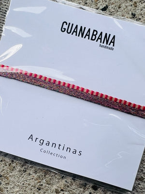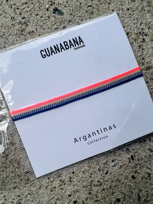 Introducing the exquisite Argantina 40 bracelet from Guanabana - a testament to the beauty and intricacy of traditional craftsmanship. Exclusively designed in Madrid, this unique accessory is handwoven by skilled artisans in Colombia on an Egyptian manual loom, using 40 water-resistant acrylic threads. The delicate yet stunning geometric patterns of the Argantina 40 will add a touch of brightness and colour to your everyday look, making it the perfect complement to any outfit. Despite its thinner profile, the Argantina 40 is just as emblematic of Guanábana's commitment to quality and creativity.