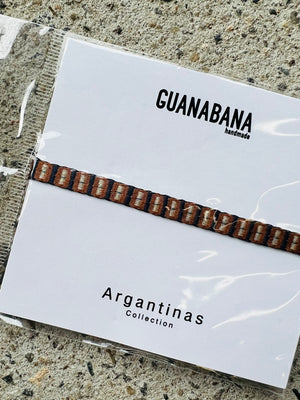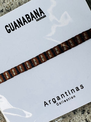 The bracelet's adjustable opening ensures a comfortable and secure fit on your wrist, while the medallion on the bracelet is engraved with our signature mantra - "Be Positive!" - reminding you to approach each day with optimism and positivity. At Guanabana, we believe that true beauty lies in self-expression and individuality. That's why we encourage you to mix and match our bracelets, creating a unique combination that reflects your personal style and image. By choosing an Argantina 40 bracelet, you are not just adding a beautiful accessory to your collection – you are also supporting a sustainable and equitable business model that empowers skilled artisans in Colombia.