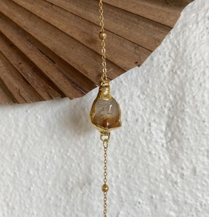 Designed in Australia and handcrafted in Turkey. Each piece has an 18k gold plating with a brass base & is crafted around the shape of the individual stone. The natural beauty reflects in the colour and form of each piece with a play on colour and texture.