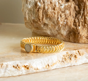 Designed in Australia and handcrafted in Turkey. Each piece has an 18k gold plating with a brass base & is crafted around the shape of the individual stone. The natural beauty reflects in the colour and form of each piece with a play on colour and texture.