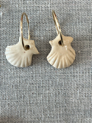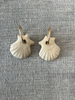 The Clay Scallop shell earring made of clay and gold filled hoops.