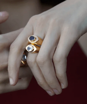 Set with an aquamarine, the Ayna ring is a stylish talisman for any outfit to protect you from life’s negative glares.
