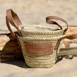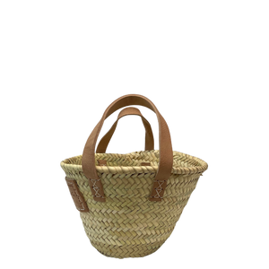 The Market Baskets are genuine, French-inspired baskets imported from Morocco. Each basket is handwoven from palm leaves. The Market Basket handles are made from genuine Moroccan leather which are sewn on by hand. Our non-leather handles are made from firmly woven sisal rope. sizing will vary slightly, but it means the basket you get is unique and made with love and care. All baskets are eco-friendly, sustainable and very strong.