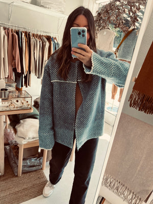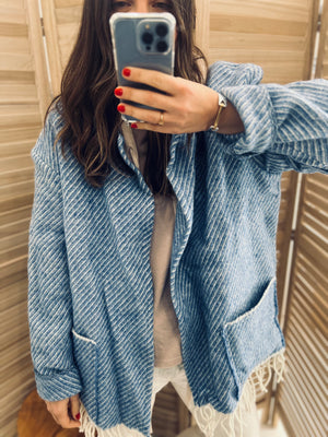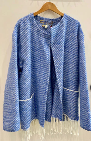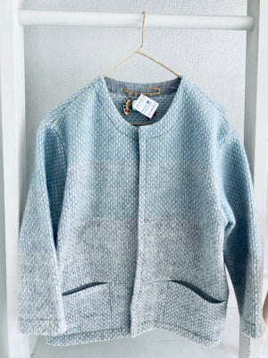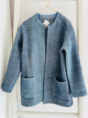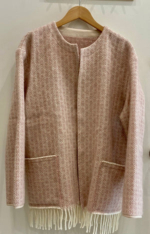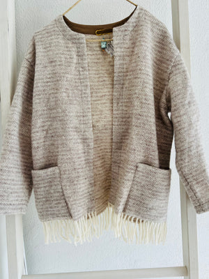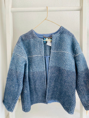 Fabric: 100% New Zealand Wool. Made through the re-purposing of wool blankets. Each jacket has its own unique detailing creating it's own personality.