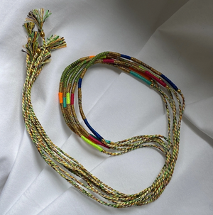 The closure is done with a simple knot. A nice mix of colorued yarns!!