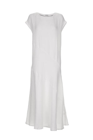 Stylist Notes: A bias-cut maxi dress, with boat neckline and a hint of sleeve, designed to flatter all shapes and sizes. The flowing cut skims the body, while subtle diagonal detailing maintains the clean silhouette. You can’t go wrong with this easy-to-wear goodie.
