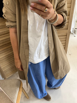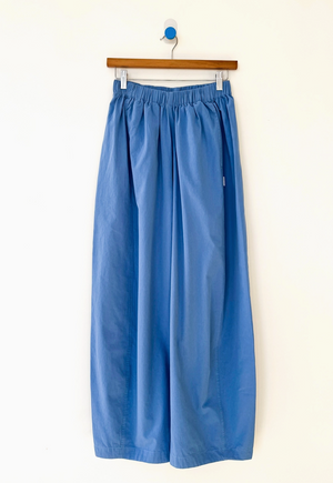 Billowy pants made to move with you throughout the day. Crafted from a light yet durable and elevated cotton they're the kind of pair you can wear anywhere, from casual moments to polished looks. Designed with an elastic waist and side pockets, their unique leg shape sets them apart. A third side panel adds extra volume, creating a sculptural silhouette that’s relaxed, airy, and full of movement.