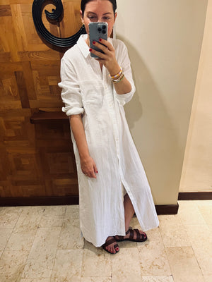 The ultimate in easy chic shirt dresses. Throw it on! wear it on top of your swimwear or all on it's own for the weekend, lounge, resort or travel. You can dress this one up for work too!
