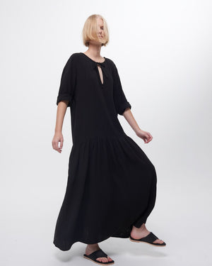 Stylist Notes: Based on the original HONOUR Play Smart dress, with a long sleeve, side pockets and a maxi length hem. Famous for being worn two ways, either covered front with tie bow back or with a tie front detail. Versatility has always been key to this style.