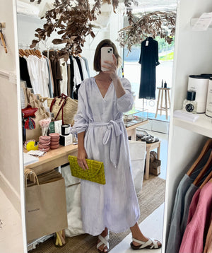 Stylist Notes:  The Sleeper Maxi has been designed as much for long weekend sleep ins as it has been for lazy days on the beach. The best throw on over your swimwear, Whilst also working perfectly all on its own worn loose or tied with its waist tie for summer evenings. Expect to get multiple wears and looks out of this versatile piece.