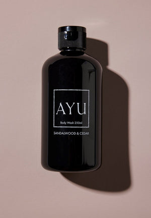 Sandalwood and Cedar: Ceremonial glow. Honour the sacred ritual of bathing with a grounding body wash formulated to purify with an earthy blend of rose, turmeric, agarwood oil, cedarwood oil and the holy sandalwood that is revered to fragrance the divine realms. Moisturising for dry skin.