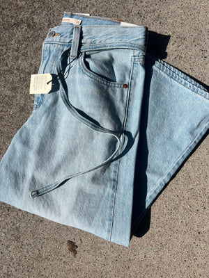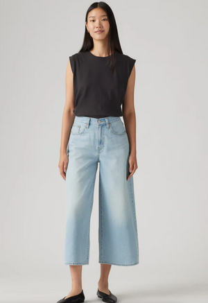 Levi's took an oversized baggy cut, a culotte design and a wider straight leg and rolled it into these XL Culotte jeans. Then, they topped them off with an adjustable tie belt for added versatility and they got.... the new jean silhuette of the season.