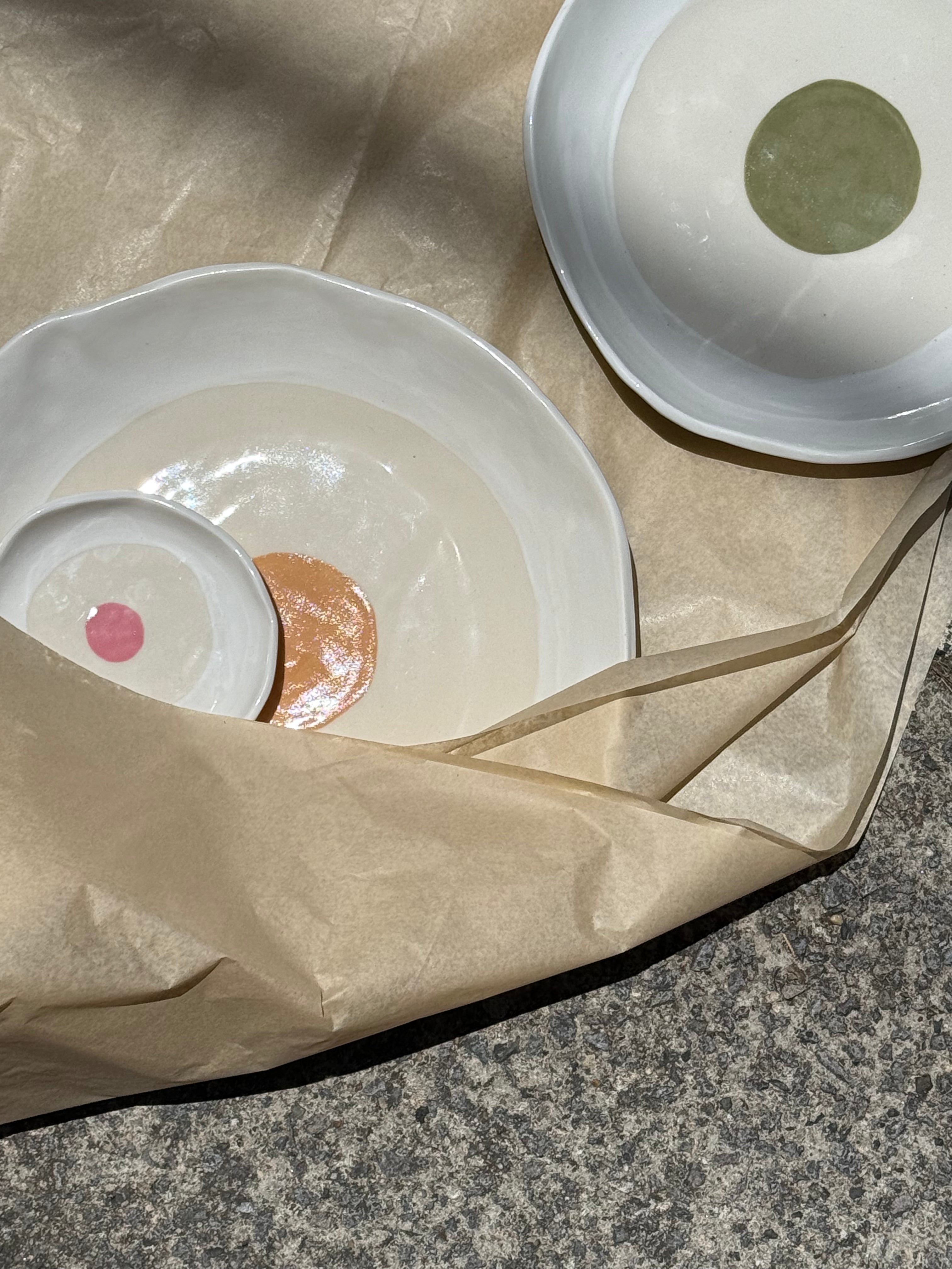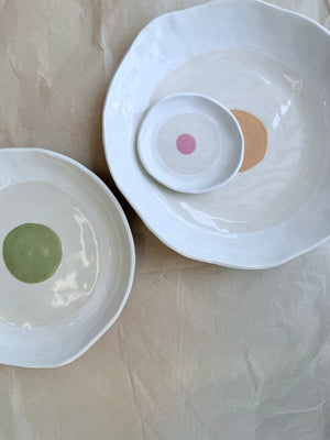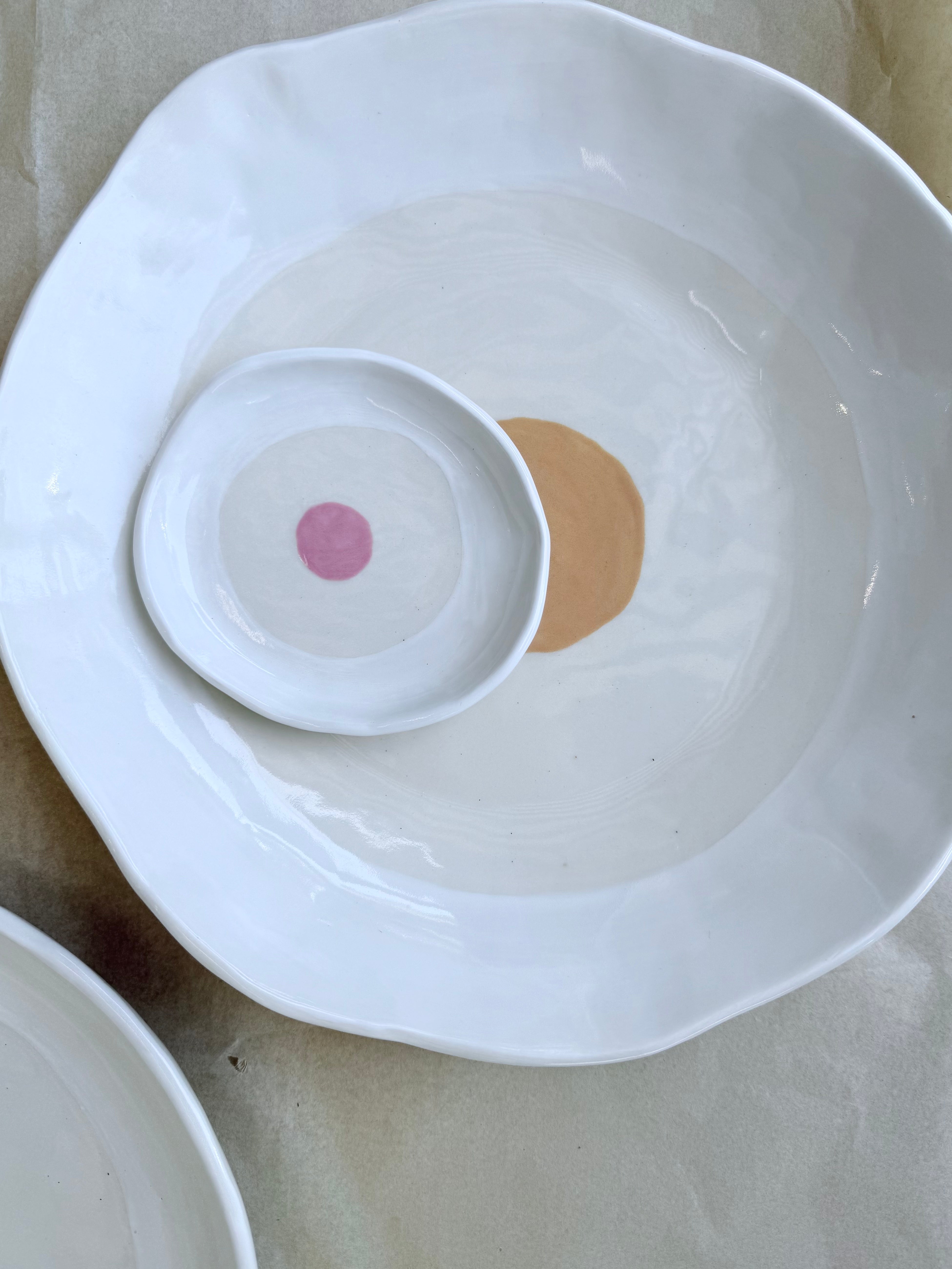 Handmade ceramic double glazed dinnerware. Each piece having it's own unique characteristics making it imperfectly perfect. Based around the design of the evil eye. These pieces make for the perfect cooking, entertaining, home decor and the perfect gift.