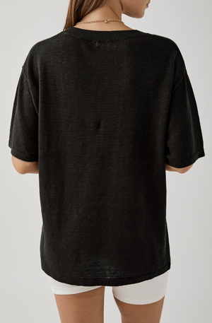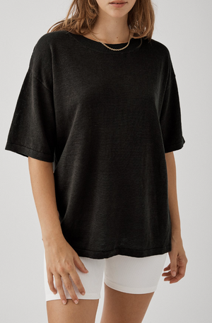 Harper organic knit T-shirt is a 100% natural linen knit. Designed to be worn as an oversized, classic tee shape. Wide ribbed neck detail with a clean structured finish. It can be enjoyed for seasons to come.