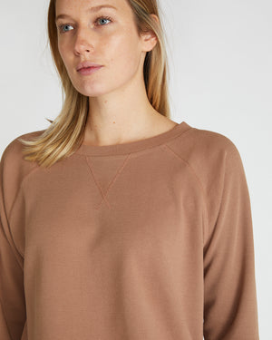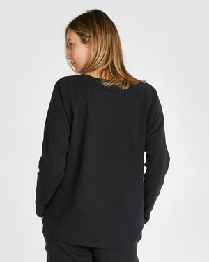 The waffle sweat is a relaxed cut with a raglan inset sleeve designed to be loose but flattering with a straight hem and small side splits.
