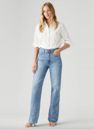 As if the Levi's Ribcage jeans couldn't get any better—meet the Ribcage Wide-Leg jeans. The tailored, leggy look of the '70s and a '90s-inspired super high rise come together to create the perfect proportion to show off the rise and define your waistline. With a soaring 12-inch rise, they're about to become your waist-defining, leg-lengthening obsession.
