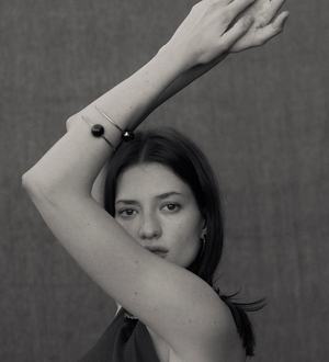 A sphere of red tiger eye is at the centre of the Artemisia bangle, set in a golden circle with an orb counterbalanced opposite, this bangle looks elegantly commanding pulled up the arm or just chic sitting on the wrist.