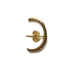 Give your lobe some cuff love with this punchy gold crescent earring. It’s best worn as a single with mismatched appendages on your other ear for an instant “I’m with the band” attitude. This maverick golden arch may be small, but it packs a mighty louche attitude.