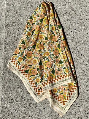 This range of Indian scarves is our favourite addition to the Bonheur du Jour collection. These scarves reminded the team at Bonheur of the know-how of the craftsmen of Jaipur, who made the prints by hand with only a little ink, a stamp, and a lot of talent.