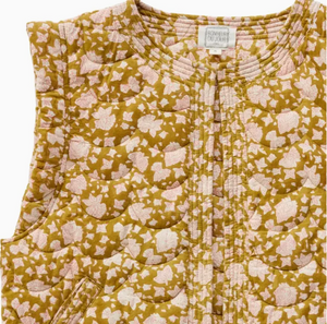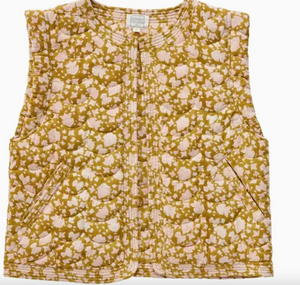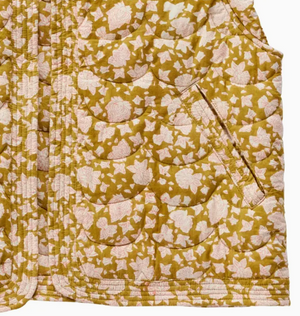 Sleeveless quilted floral print women's vest. The Cherry vest is a favourite piece that will enhance many outfits. We love its decorative quilting and pockets.