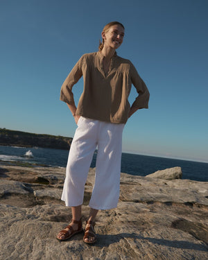 Stylist notes: A key to your wardrobe! The top that will work back with almost any look. The perfect match to the new Ease pant yet. We love this set as much as we love the Ease top making a relaxed statement all on its own. Pair back with any style in the HONOUR wardrobe or your fav wardrobe staples. Pockets for style and function with a relaxed loose style.