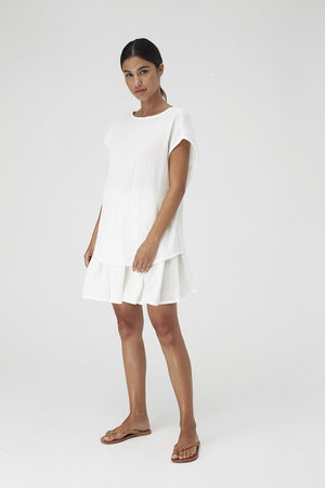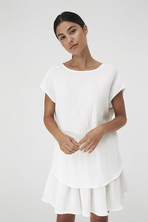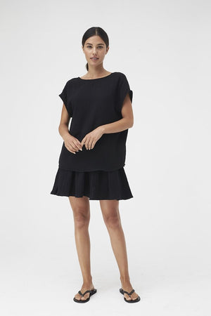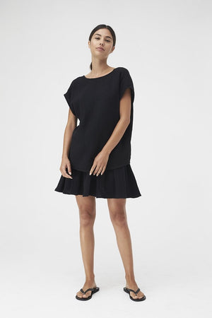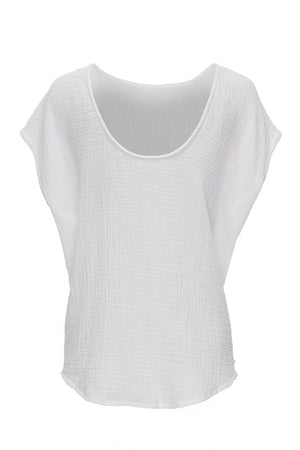 Stylist Notes: A reversible, classic tee style with loose capped sleeves and a curved hemline. The Two Side Top is sleek, feminine and ultra-versatile. Wear it with a high front neckline and low back or flip it around for a closed back and scooped front neckline. The scooped front is super-flattering for a bigger bust. Pair this top back with sneakers and denim or dress it up with heels for the evening. A total no brainer!